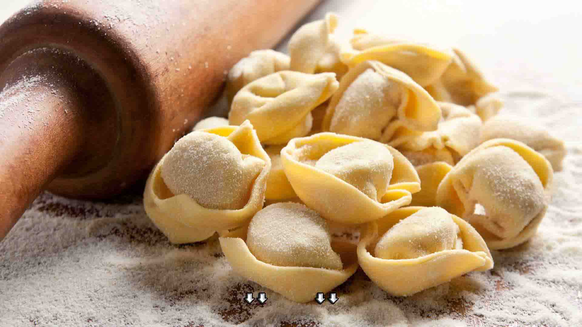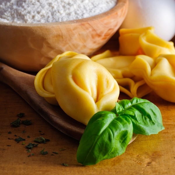 Typical stuffed egg pasta from Emilia, Italy. Its origin is found in "Secchia rapita", poem by Alessandro Tassoni in 1624, where to help solving the war between Modena and Bologna come Bacchus, Venus and Mars; they stopped to sleep at an inn in Castelfranco Emilia, where the innkeeper was conquered by the curves of Venus, and reproduced her navel with pastry he was brewing.